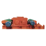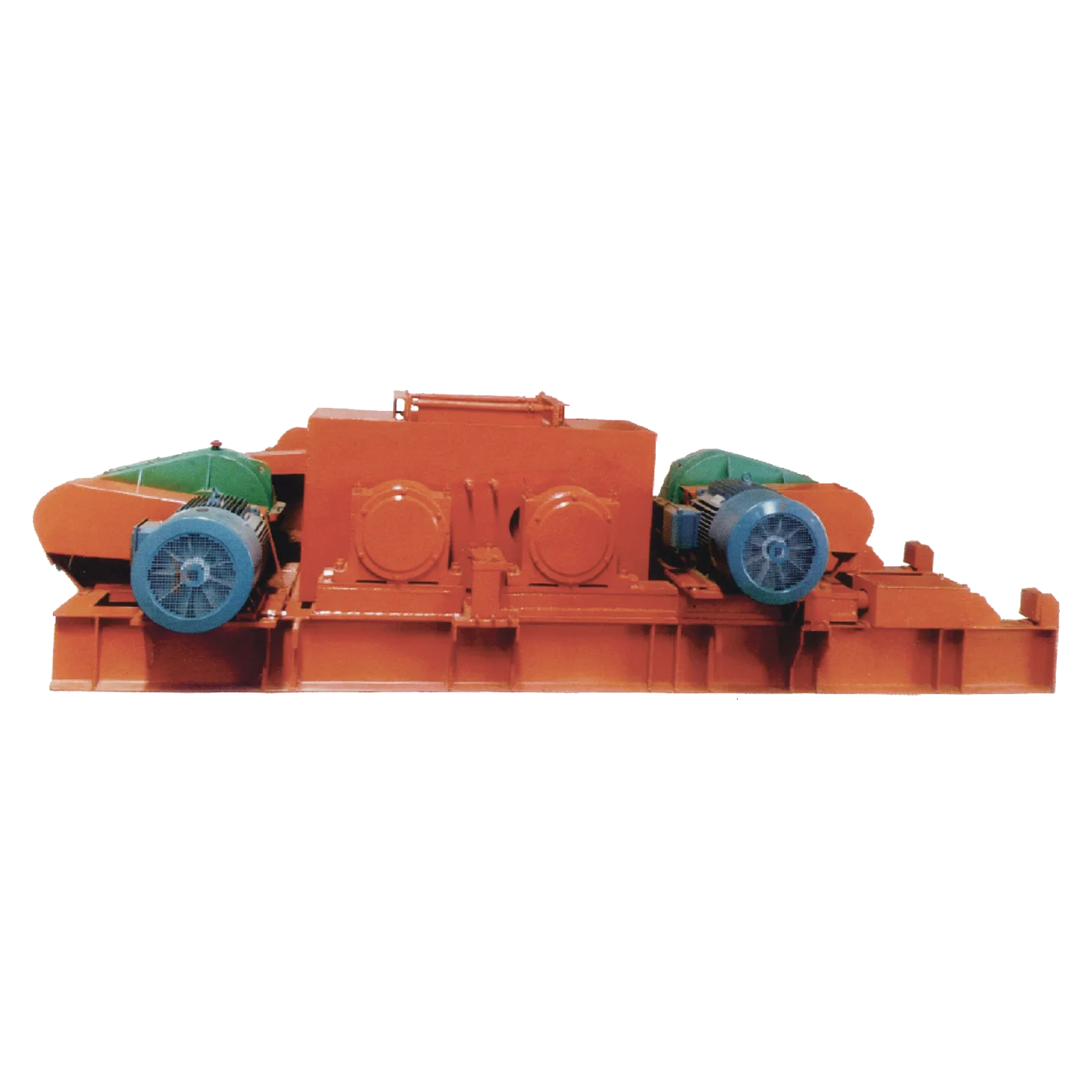 - 驱动机构是由两个电动机,通过三角带传动到减速器,再通过链条传动带动辊圈,作相对方向旋转运动。在破碎物料时,物料从进料口通过辊圈,经碱压而破碎,破碎后的成品从底架下方排出。